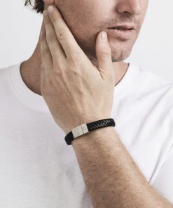 Experience the perfect blend of style and masculinity with this Black Leather Plaited Bracelet from Cudworth. The intricate plait design is crafted using premium black leather, finished with an antique-plated stainless steel clasp for a rustic yet refined touch. This bracelet is a sophisticated addition to any gentlemen’s accessory collection.