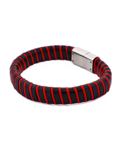 Elevate your style with the Cudworth Men’s Black & Red Leather Bracelet. This sleek accessory boasts a striking combination of bold red and sophisticated black leather, securely fastened with a robust stainless steel clasp. Crafted by renowned brand Cudworth, this bracelet adds a contemporary touch to any outfit, perfect for everyday wear or special occasions.