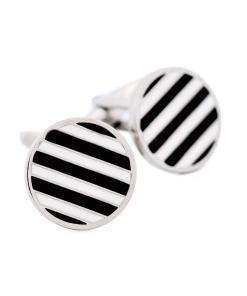 Enjoy a touch of elegance with the Black & White Stripe Round Cufflinks from Cudworth. Crafted with meticulous attention to detail, these cufflinks add a sophisticated spin to your outfit. Perfect for formal occasions or simply to elevate your everyday wear, they exhibit a timeless black and white stripe design which ensures versatility and style. Make an impression with Cudworth.