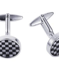 Light Grey Check Enamel Round Cufflinks						 Rhodium Plated Sapphire Crystal Oval Cufflinks