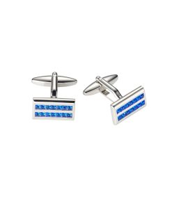 Add a touch of luxurious elegance to any outfit with these Cudworth men’s Sapphire Crystal Rhodium Plated Rectangle Cufflinks. The stunning sapphire crystal accentuates the rich rhodium plating, creating a sophisticated accessory for the modern gentleman. Ideal for formal occasions or boosting everyday style, these cufflinks exude timeless appeal.