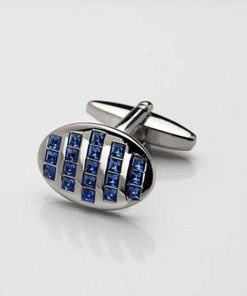 Adorn your formal attire with a touch of elegance with these Cudworth Rhodium Plated Sapphire Crystal Oval Cufflinks. Designed for the stylish man, these cufflinks feature a stunning sapphire crystal encased in highly polished rhodium plating. The oval design exudes a timeless charm, making these cufflinks perfect for any occasion.