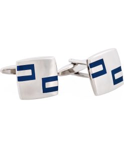 Polished Rhodium Plated Square Cufflinks with Criss Cross White Enamel Inlay