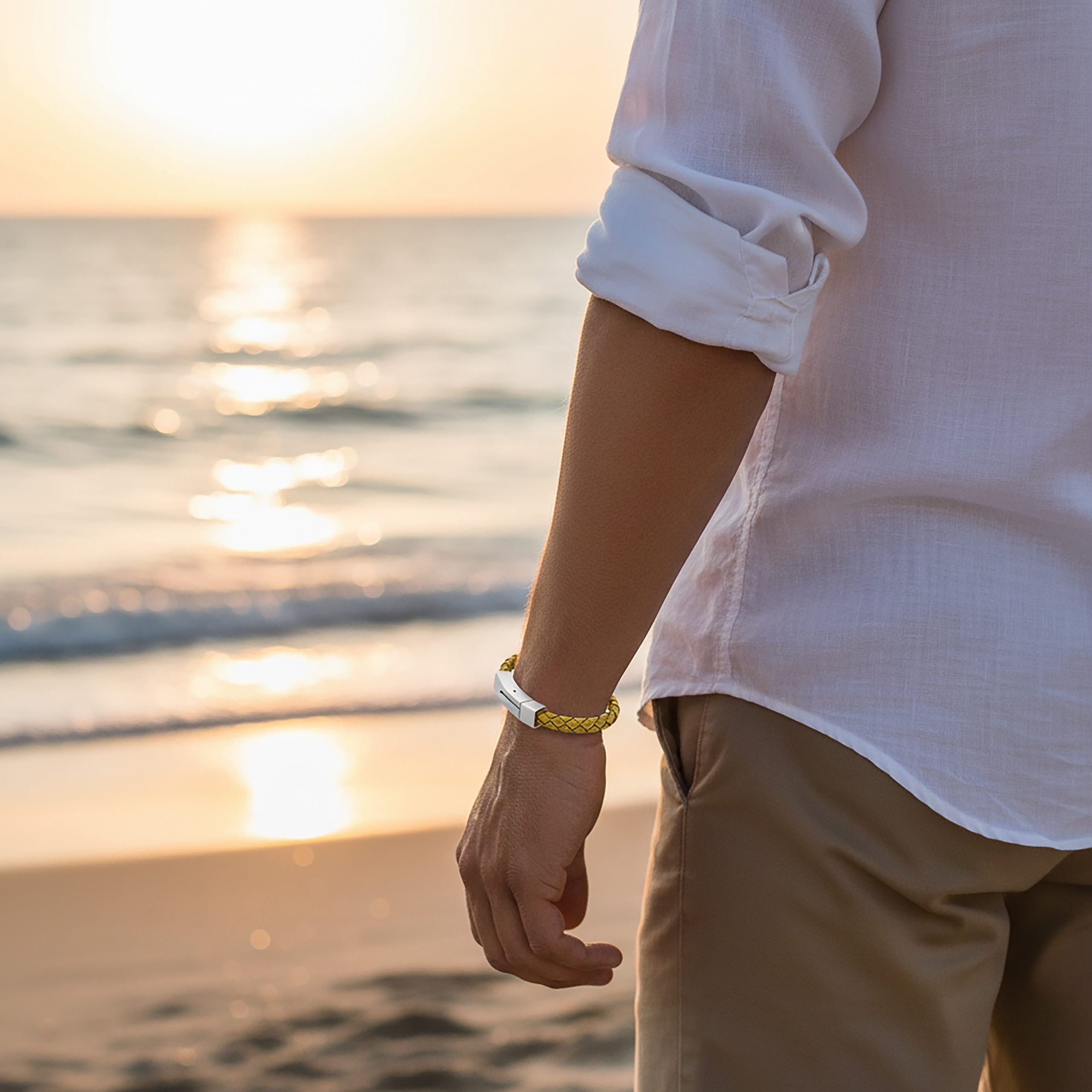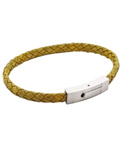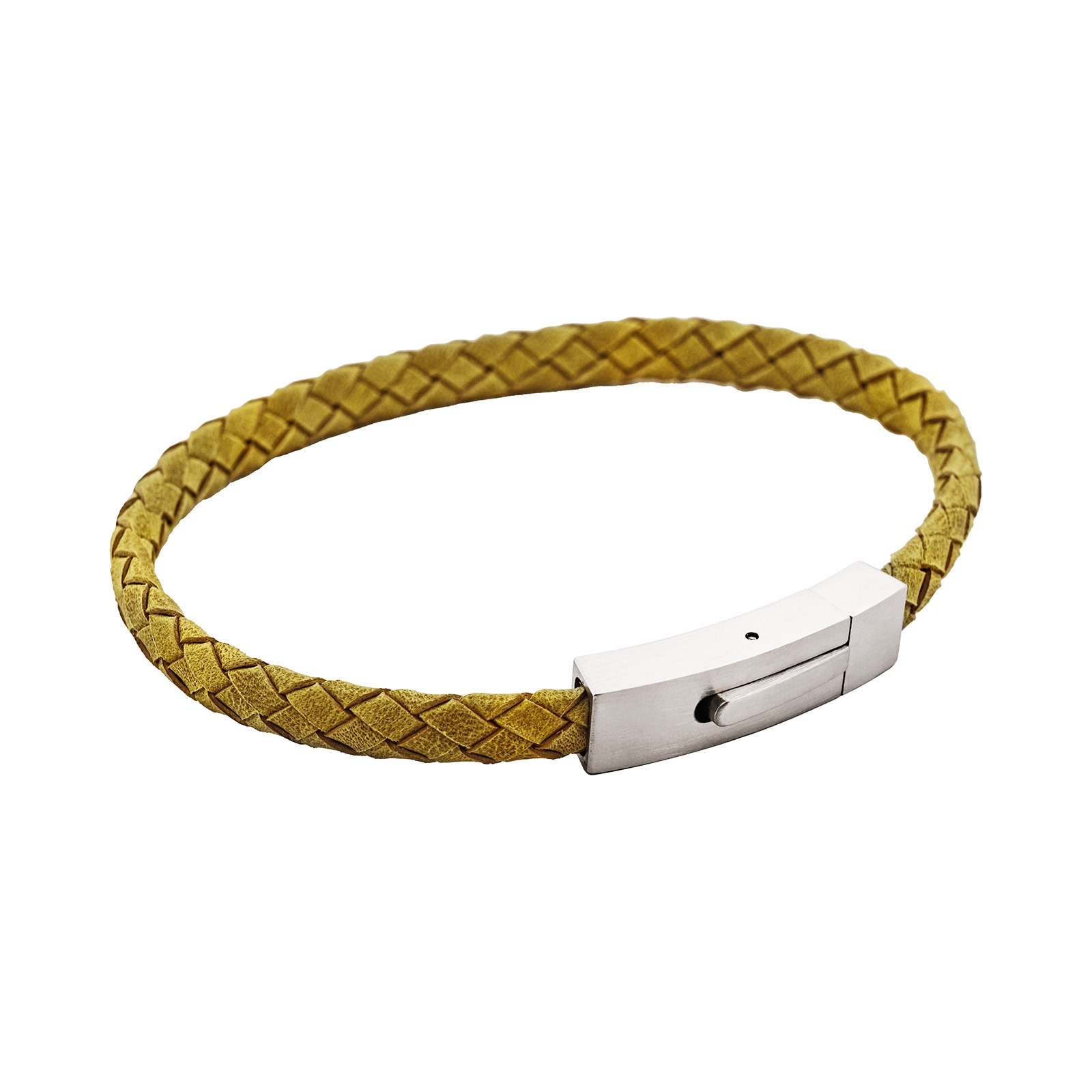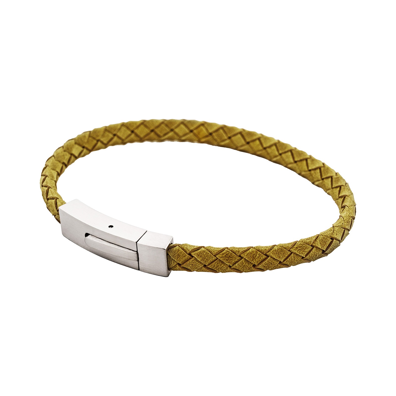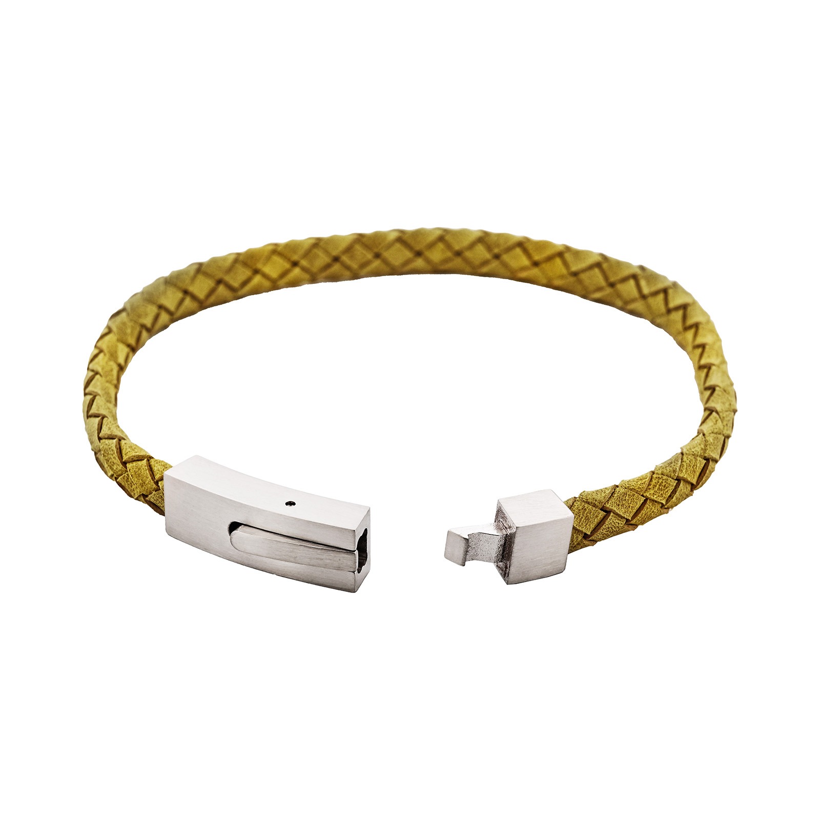 Cudworth’s Calabria bracelet is a sharp blend of colour and strength. The braided suede in leaf green gives it a bold edge, while the brushed steel clasp adds a refined finish. At 21.5 cm long and 6 mm wide, it’s a comfortable, versatile piece built for everyday wear.