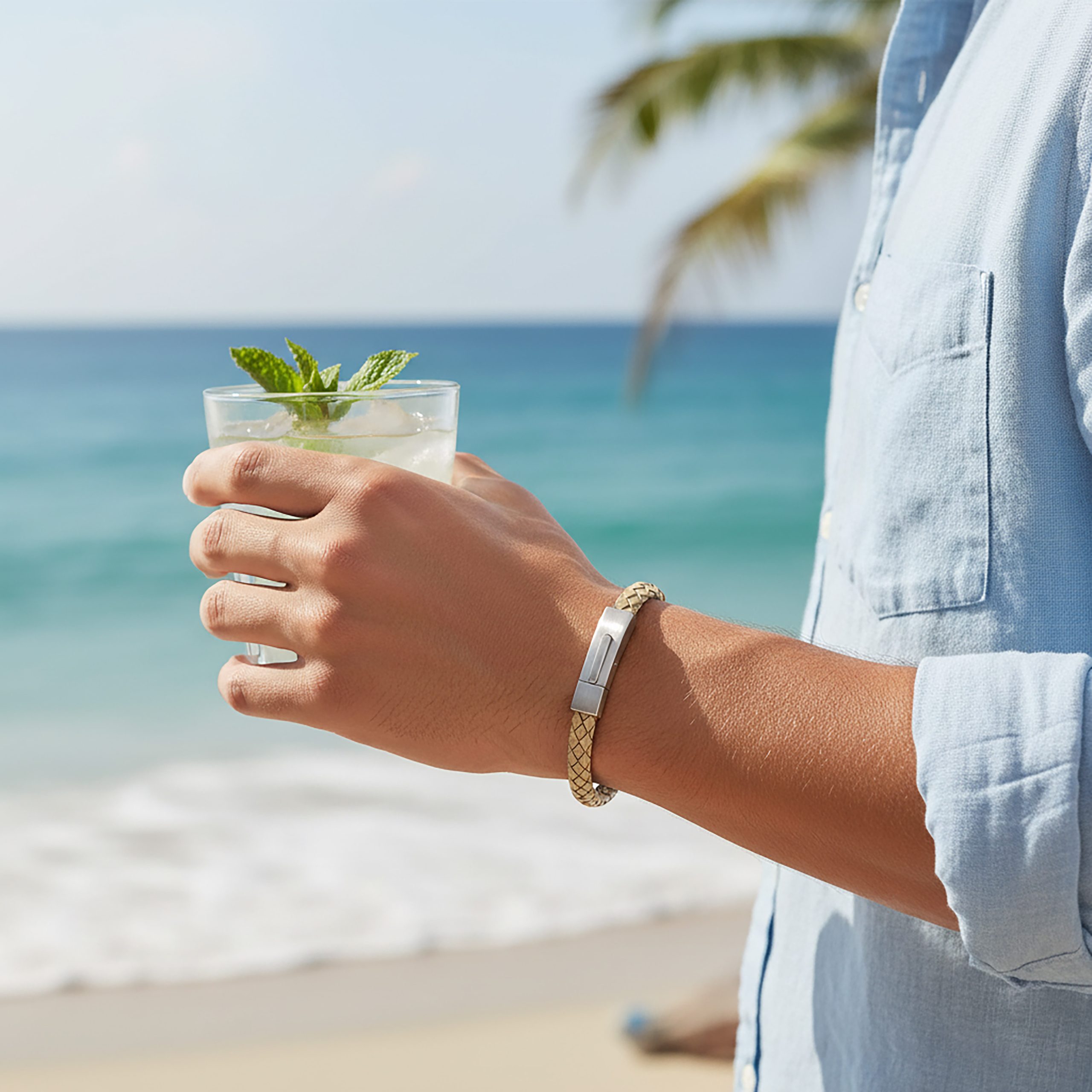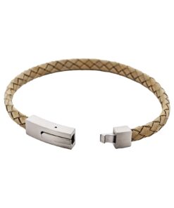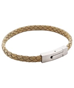 Cudworth’s Calabria bracelet is crafted for understated style with everyday versatility. The braided suede in stone beige pairs seamlessly with a brushed steel clasp, giving it a clean and modern look. At 21.5 cm long and 6 mm wide, it’s designed for both comfort and durability.