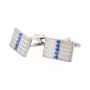 Rhodium Plated Grid-Cut Cushion Shape Cufflinks