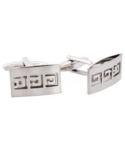 Elevate your formal ensemble with these sophisticated Cudworth cufflinks. Exquisitely crafted, they feature a brushed Rhodium plated finish and an intricate cut-out Greek key pattern that adds a touch of classic elegance to any outfit. Ideal for both special occasions and everyday wear, these cufflinks are a stylish way to add a personalised touch to your look.