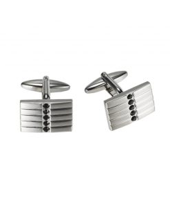 Sleek and sophisticated, these Cudworth Brushed Rhodium Plated Rectangle Cufflinks boast an elegant design. Each cufflink features five jet black crystals set in a brushed rhodium-plated rectangle. Perfect for adding a touch of class to any formal attire.