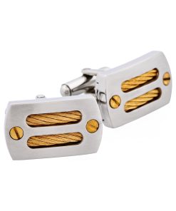 Add a touch of luxe sophistication to your attire with these Cudworth cufflinks. Expertly crafted from brushed stainless steel, they feature an exquisite ion plated gold cable and screw design, adding a dash of modernity. Ideal for formal occasions or just to make a statement at the office, these cufflinks will effortlessly elevate your look.