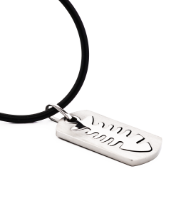 Discover the Cudworth Brushed Stainless Steel Pendant, featuring an eye-catching cutout fish pattern. Designed for the modern gentleman, this pendant hangs on a robust rubber chain for a sleek and masculine finish. Easy to wear and versatile enough to complement any outfit, this piece is sure to impress.