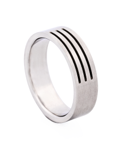 This Cudworth men’s ring, crafted from brushed stainless steel, boasts a contemporary aesthetic. It features three distinguished cutout lines, adding an understated yet sophisticated touch to its design. Ideal for everyday wear or special occasions, this ring effortlessly complements any gentleman’s style.