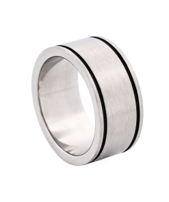 Introducing the Cudworth brushed stainless steel ring, sleekly designed with two black enamel lines for a modern, masculine aesthetic. This stylish piece delivers an understated polish to any outfit while ensuring durability for everyday wear. Perfect for the confident man who values quality and style.