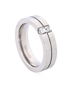 This Cudworth men’s ring offers a blend of industrial charisma and sophisticated sparkle. Crafted from brushed stainless steel, it features two cubic zirconia gems that add a refined touch. A perfect accessory for the modern gentleman, this ring brings together durability and style effortlessly.