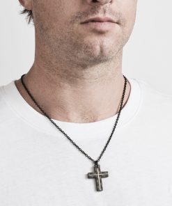 Introducing Cudworth’s Carbon Fibre Cross Pendant, boasting a uniquely stylish design. This men’s necklace features an eye-catching carbon fibre cross with ion-plated rose gold lines, coupled with a robust 55cm ion-plated black chain. It’s a confident blend of sophistication and edge — perfect for adding a refined touch to any outfit.