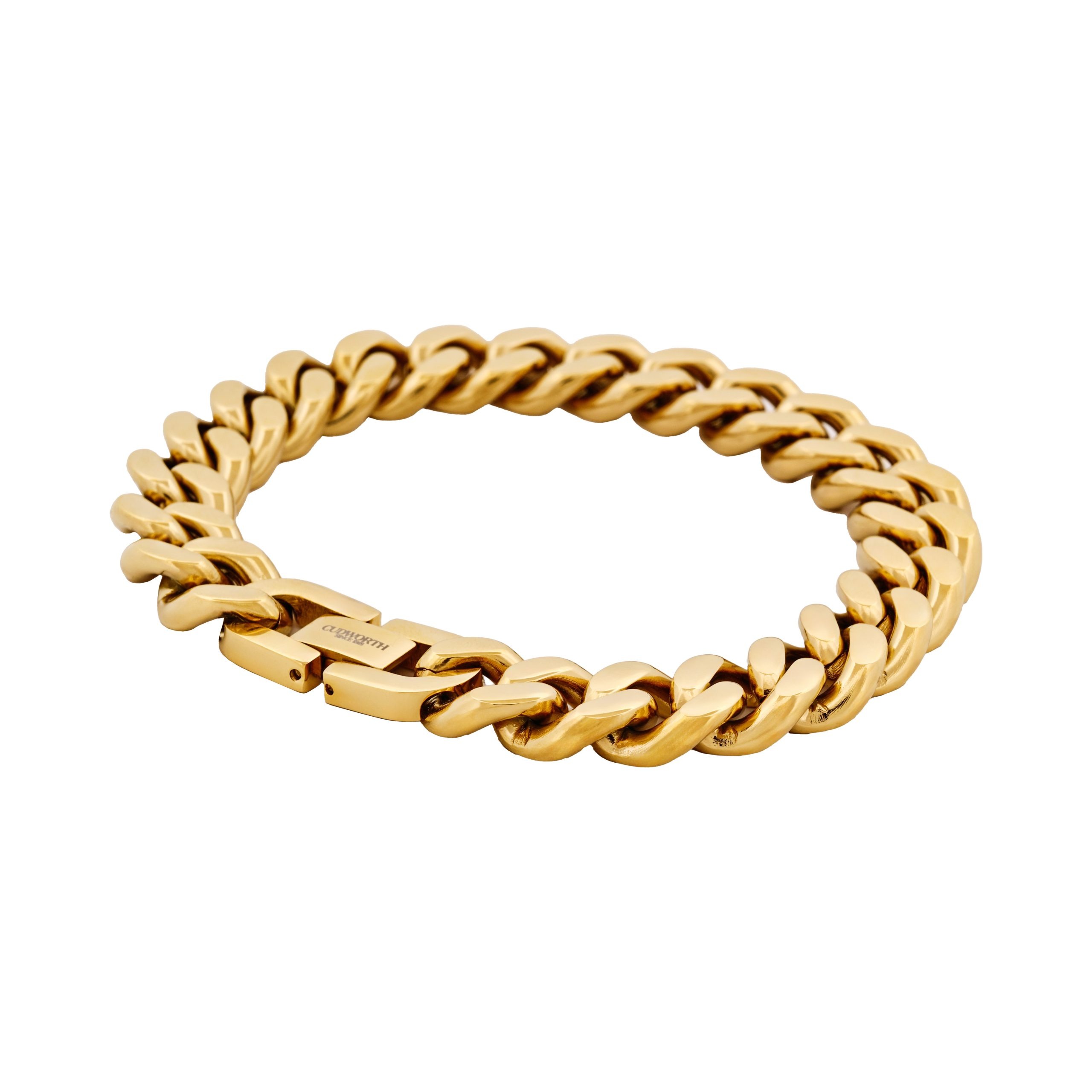 Elevate your style with the Cudworth Classic Cuban Link Bracelet in ion-plated gold. Its bold interlocking links offer a strong, refined look, while the 215 x 12mm design provides a confident presence without overpowering your outfit. The polished finish adds warmth and sophistication, making it suitable for both smart and casual occasions. A robust clasp ensures secure, comfortable wear. Crafted with precision, this bracelet is a modern essential for men who appreciate timeless detail and understated luxury.