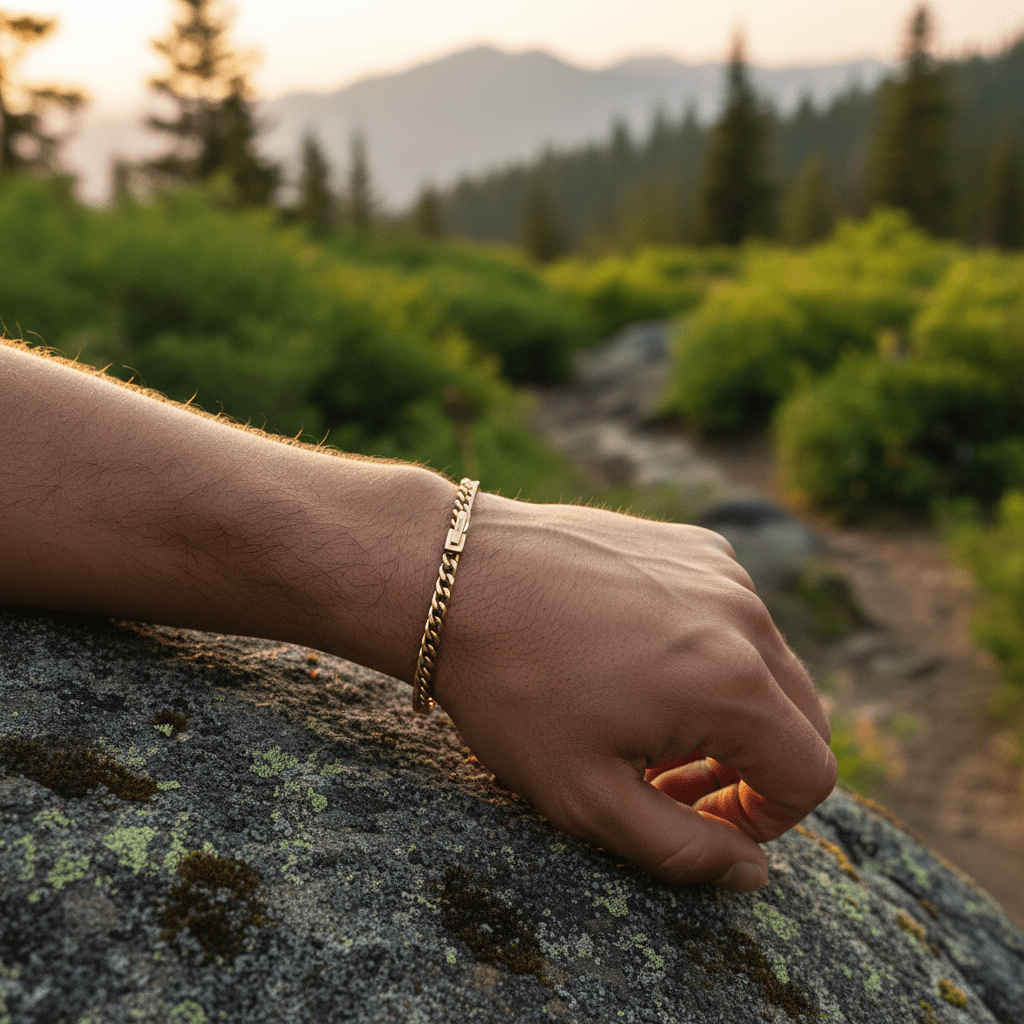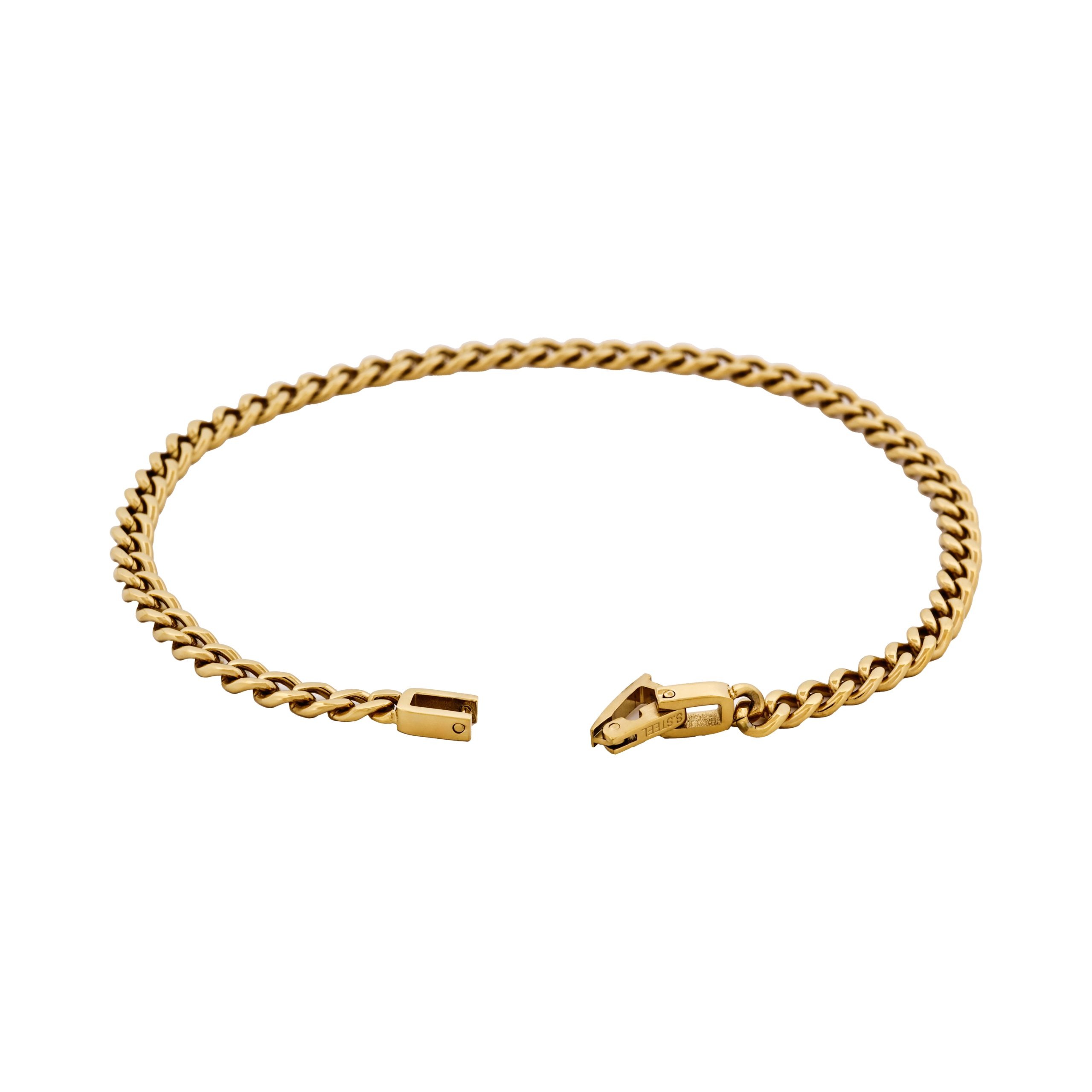 Materials Used – Classic Cuban Link Bracelet Ion Plated Gold (215 x 4mm):