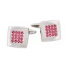 Polished Rhodium Plated Square Cufflinks with Criss-Cross Crimson Enamel Inlay