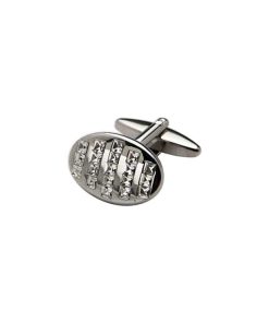 Add a touch of elegance to your formal wear with these Cudworth Rhodium plated oval crystal cufflinks. These beautifully crafted accessories, boasting a unique blend of simplicity and sophistication, are perfect for enhancing any gentleman’s attire. They feature an exquisite oval design embedded with a radiant crystal that captures light from every angle.
