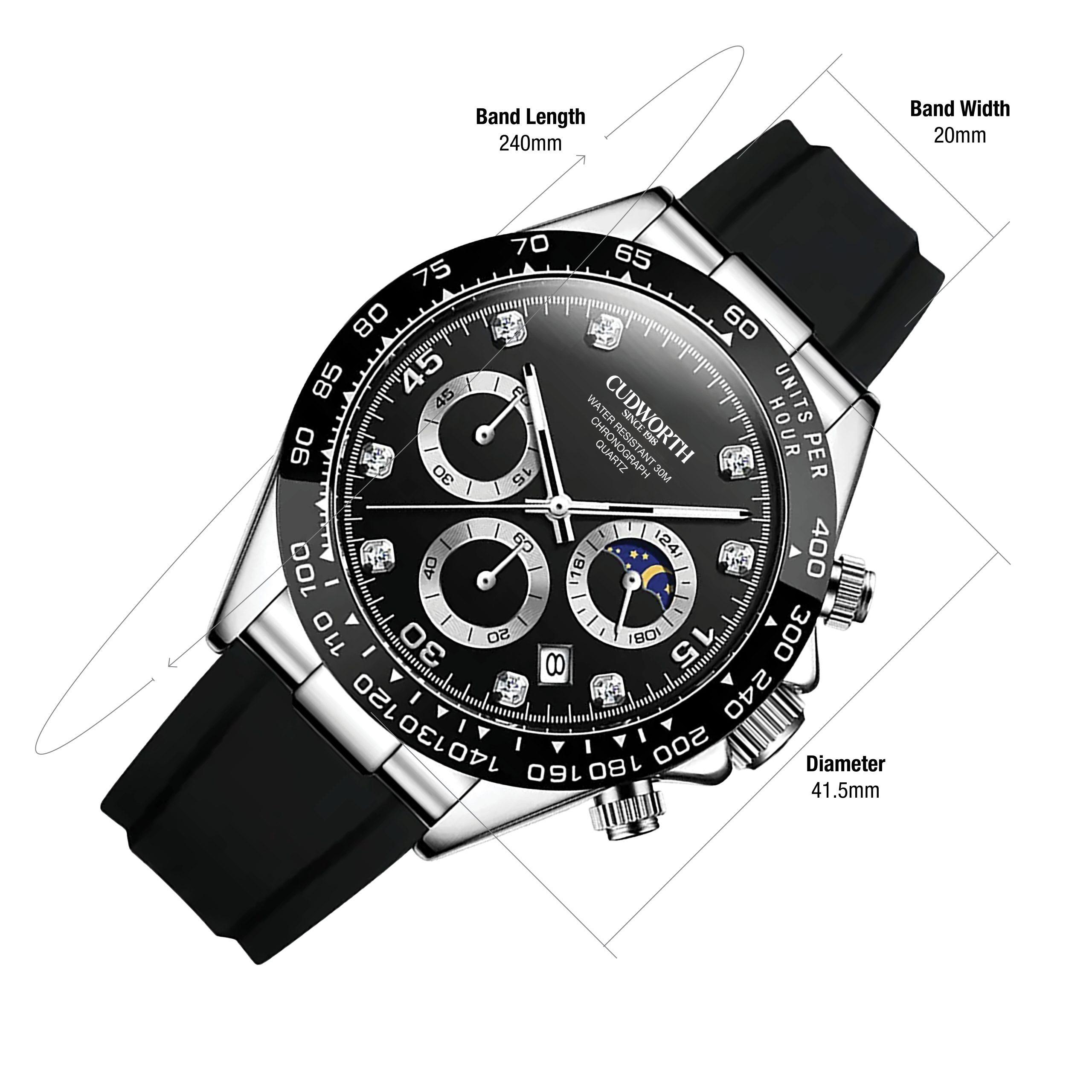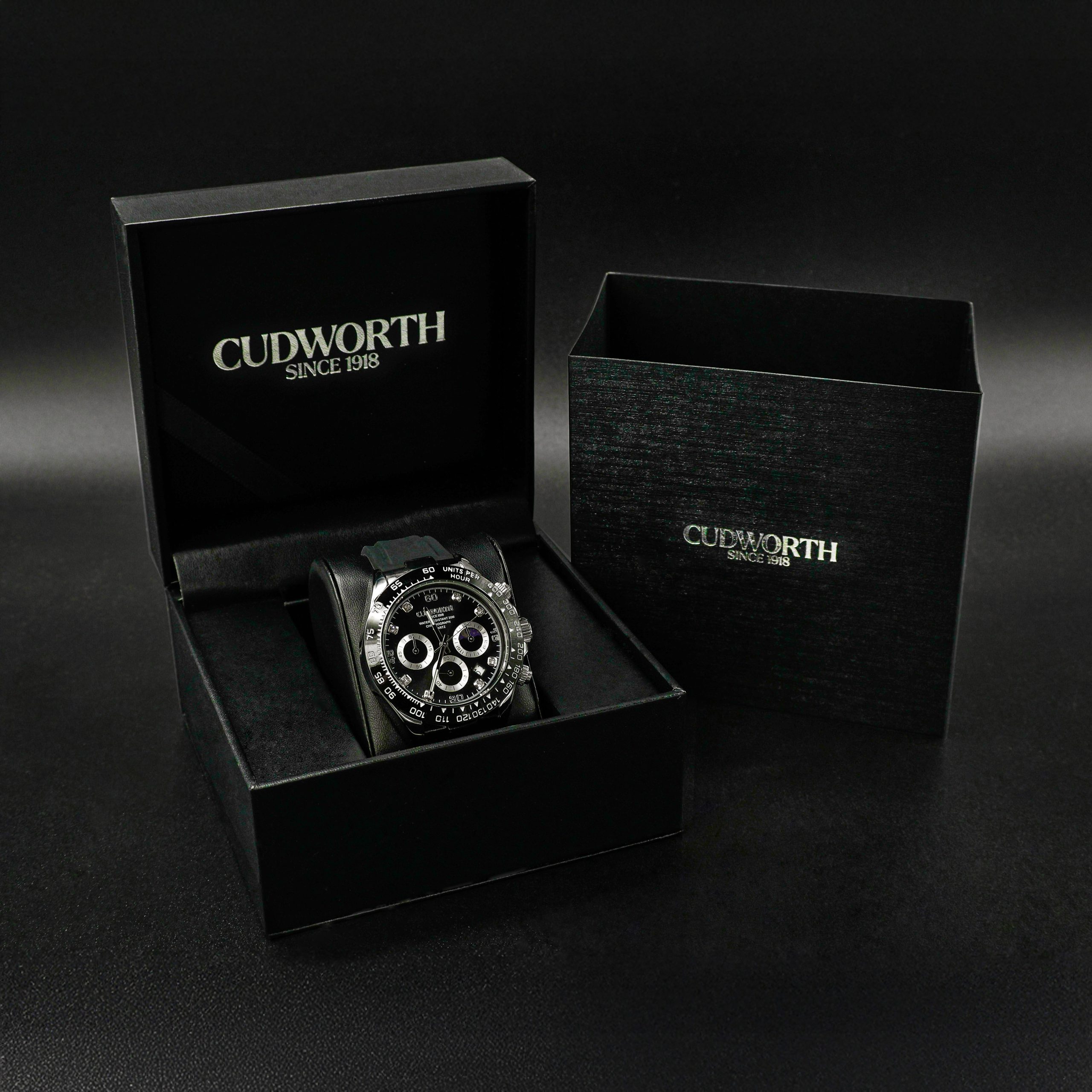 Completed with a comfortable black silicone strap and signature Cudworth detailing, this timepiece is built for those who push boundaries in style and performance.Your watch will be packed in a quality, padded, presentation/storage box.