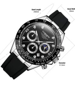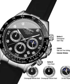 Designed for performance, this chronograph features a multi-function dial with moonphase display, 24-hour indicator, and triple sub-dials for precise timekeeping.
