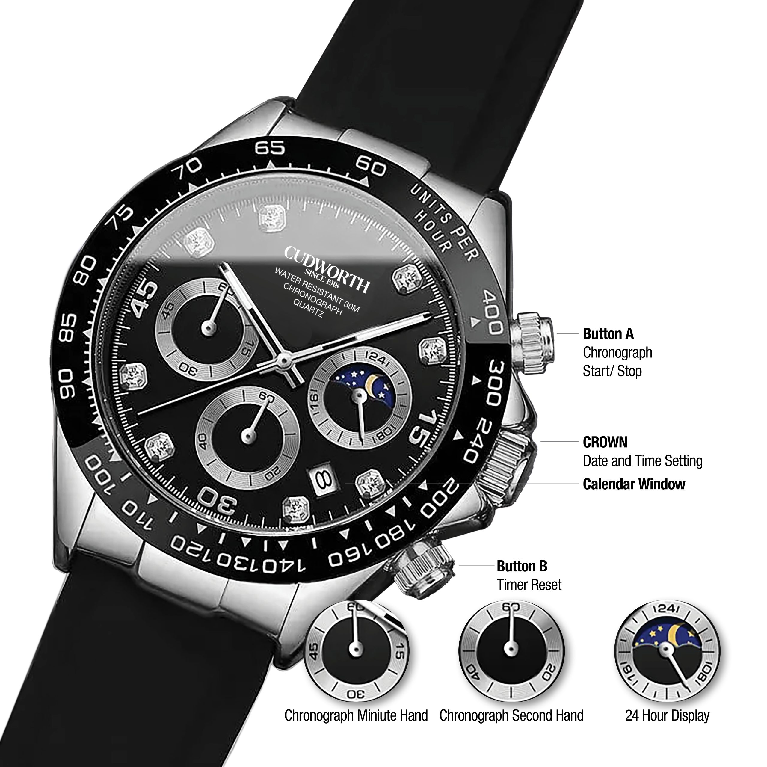 Cudworth Apex Chronograph Jet Black & Silicone