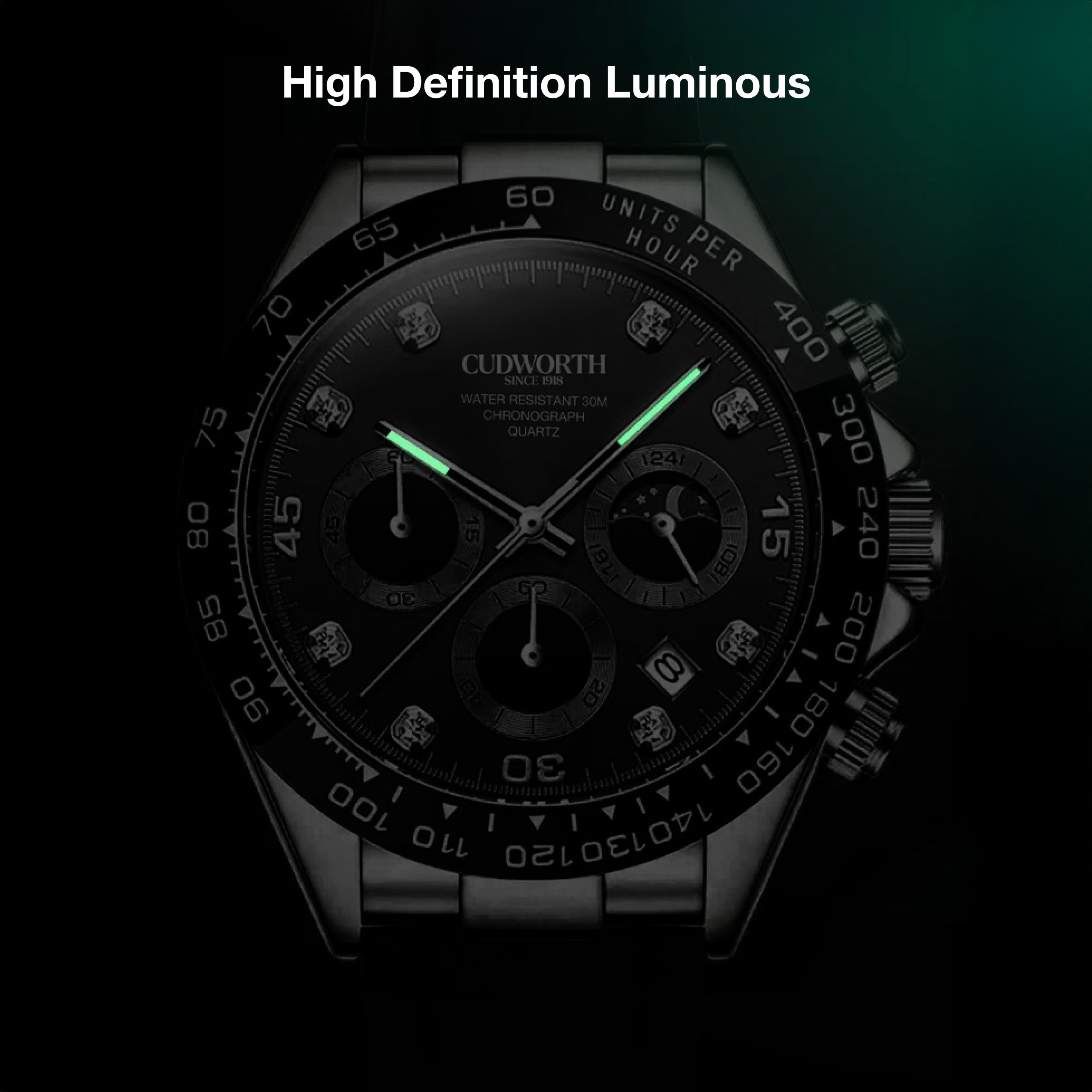 The Cudworth Apex Chronograph series is a bold statement in precision and style, available in three striking finishes: Jet Black, Turquoise, and Gold.