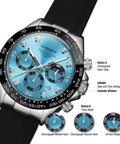 Designed for performance, this chronograph features a multi-function dial with moonphase display, 24-hour indicator, and triple sub-dials for precise timekeeping.