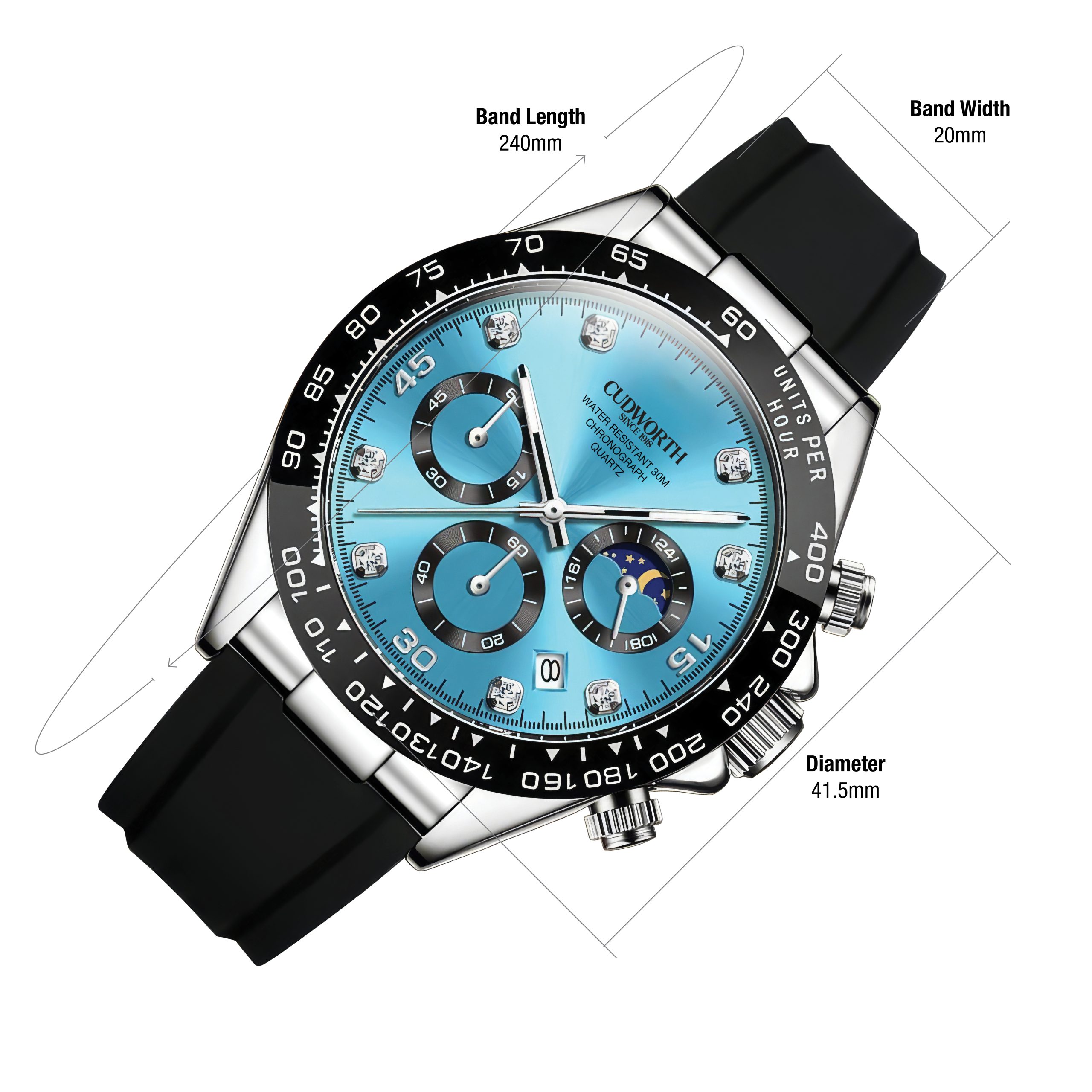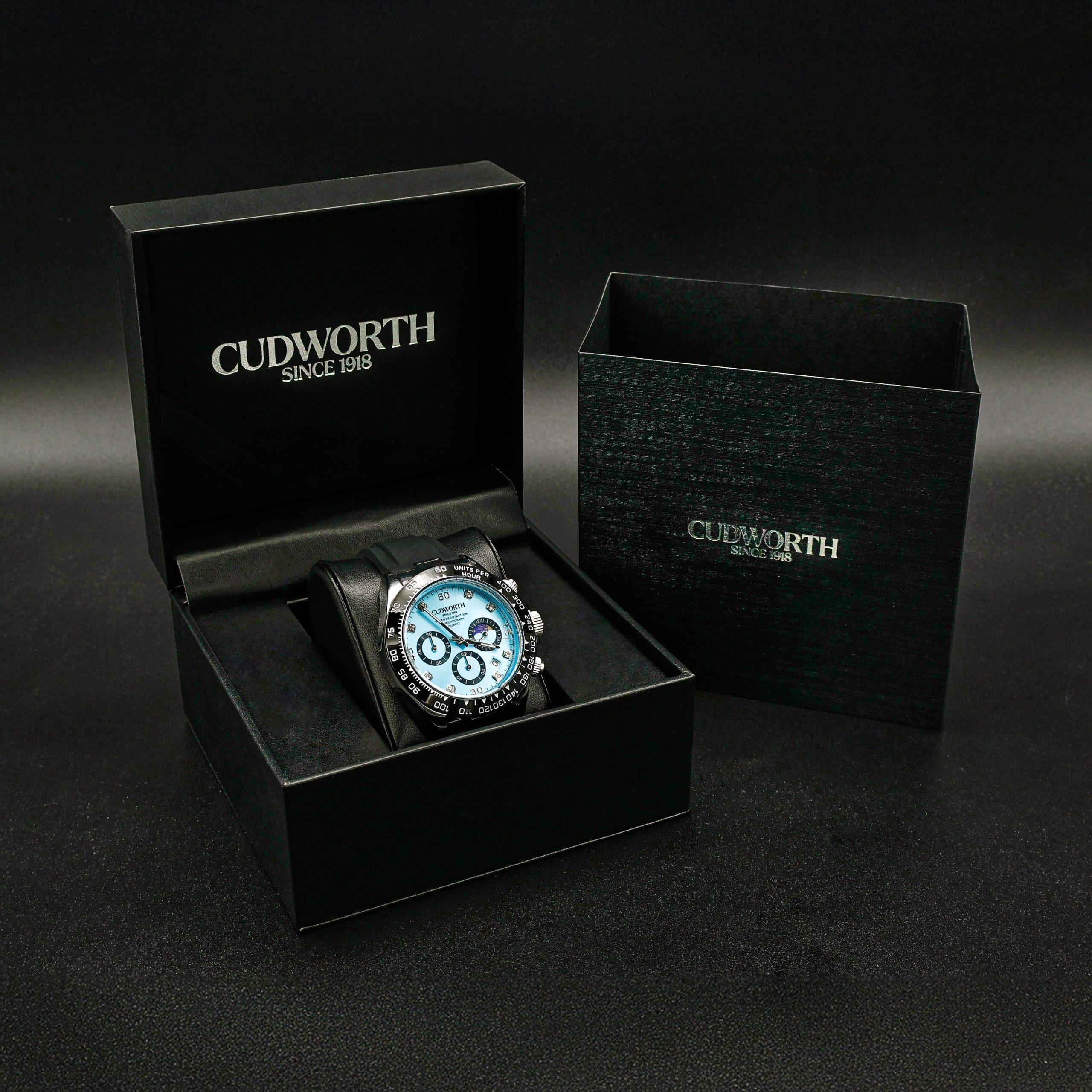 Completed with a comfortable black silicone strap and signature Cudworth detailing, this timepiece is built for those who push boundaries in style and performance.Your watch will be packed in a quality, padded, presentation/storage box.