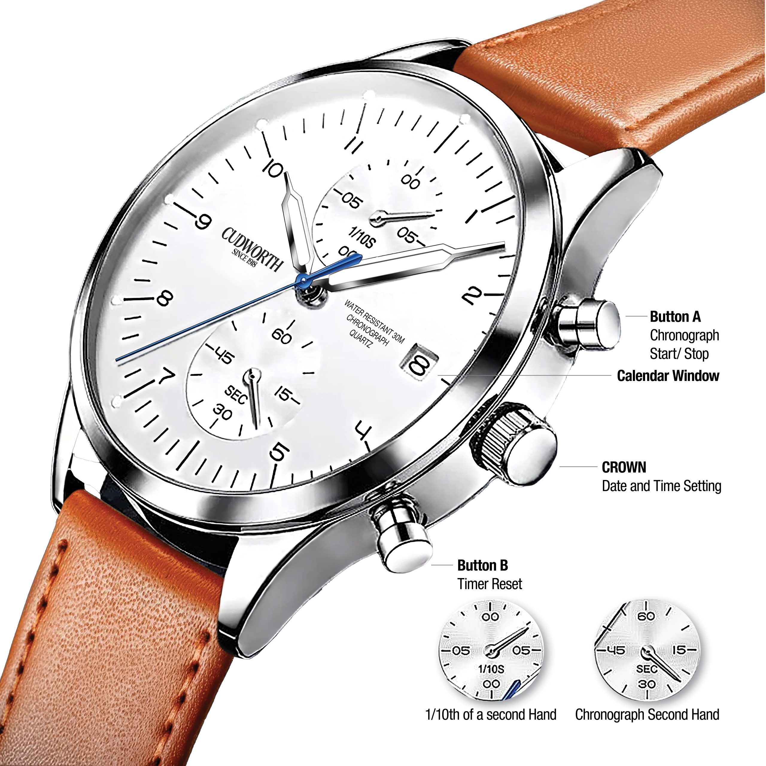 The Cudworth Heritage Chronograph CU2880W reflects timeless simplicity with a modern edge.