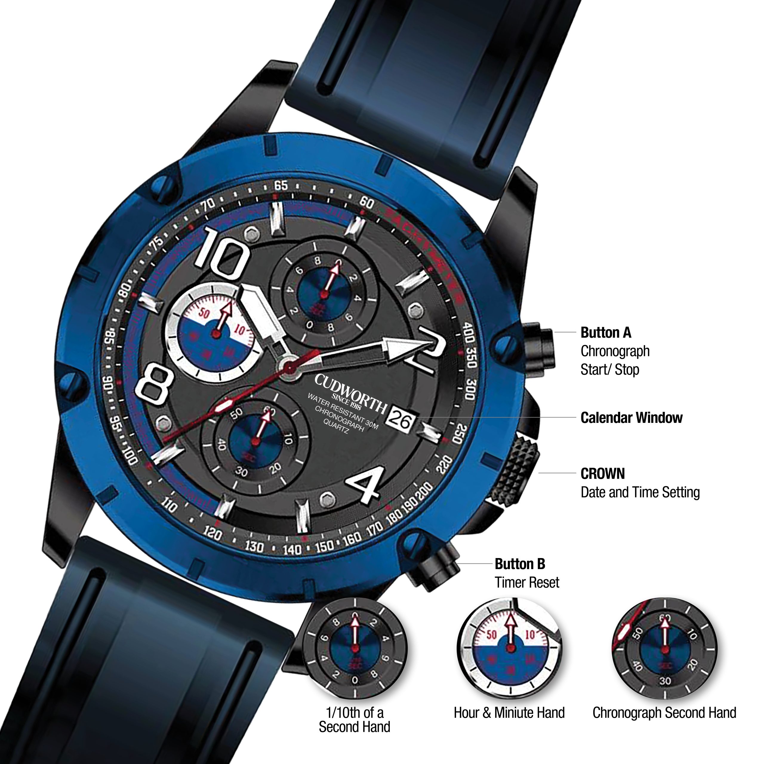 Cudworth Velocity Chronograph, Blue Black & Silicone