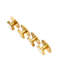 This stylish set of 4 square gold studs from Cudworth exudes masculine elegance. Crafted with Mother of Pearl (MOP) and featuring a secure screw back design, these studs add a touch of sophistication to any attire. Ideal for formal events or simply elevating your everyday look, they make an excellent addition to every man’s jewellery collection.