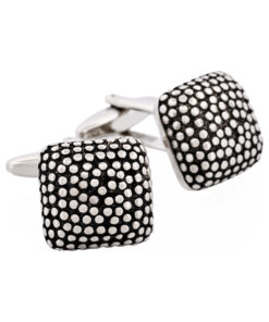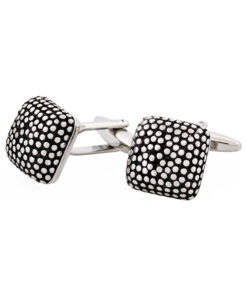 Rhodium Plated Grid-Cut Cushion Shape Cufflinks