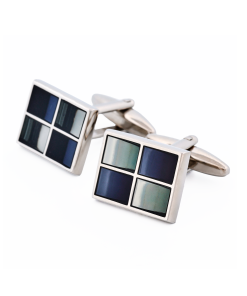 Rhodium Mop & Lapis & Onyx Square Striped Cufflinks