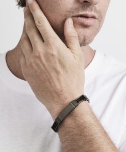 This Cudworth men’s bracelet is the perfect blend of modern sophistication and rugged style. Crafted from ion-plated antique gun metal stainless steel, it features a robust black leather strap for a touch of masculine elegance. Ideal for both casual and formal occasions, it’s designed to make a statement.