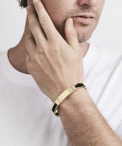 Indulge in the luxurious blend of 14k gold and stainless steel, embodied in this lavish Cudworth men’s bracelet. The ion-plated polished finish exudes masculinity, while the black leather strap adds a touch of rugged elegance. Perfect for a casual day out or a formal event, this accessory is designed to complement any outfit.