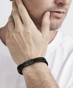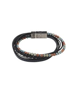 This Cudworth black leather and hematite bead bracelet is perfect for the stylish modern man. The multi-strand design showcases an effortless blend of premium materials, featuring a robust ion-plated antique stainless steel magnetic clasp for easy wear. The black hematite beads add a touch of understated elegance, making this bracelet the perfect accessory to elevate any casual or formal attire.