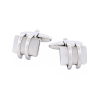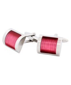 Polished Rhodium Plated Square Cufflinks with Criss-Cross Crimson Enamel Inlay