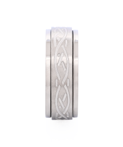 This Cudworth men’s ring is a sleek combination of polished and brushed stainless steel, featuring an etched centre pattern that adds a unique touch. The spinner style offers interactive movement, adding to its distinctive appeal. Ideal for the modern man who values quality and style.
