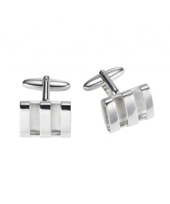 These Cudworth cufflinks are a sophisticated blend of polished and raw Rhodium plating. Designed as a hollow triple band rectangle, they combine modern style and traditional elegance. Perfect for formal occasions or everyday wear, these cufflinks amplify any gentleman’s wardrobe with sleek sophistication.