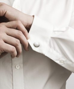 Rhodium & Light Grey Cat’s Eye Cufflinks						 Brushed Nickel Belt Buckle