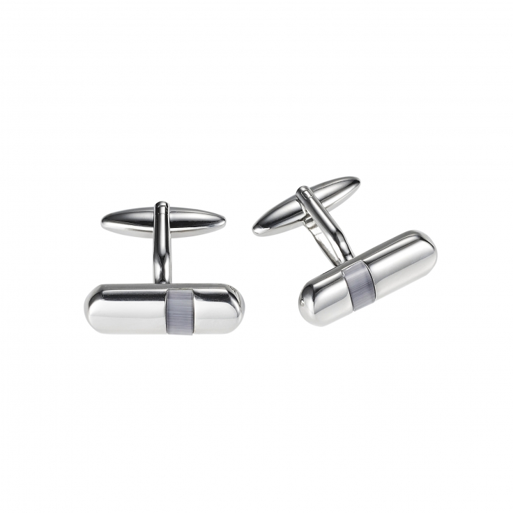 Presenting Cudworth’s polished, rhodium-plated and light grey Cat’s Eye tube cufflinks. These meticulously crafted cufflinks offer an unmatched blend of style, sophistication and durability. The subtle light grey Cat’s Eye stone adds a unique charm, making this pair an ideal accessory for both formal events and everyday wear. Invest in these cufflinks to add a touch of elegance to your attire.