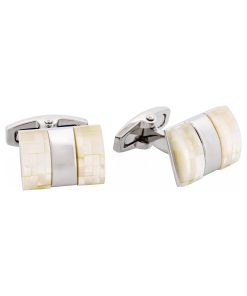 Exuding a refined sophistication, these Cudworth cufflinks are a striking choice. The polished rhodium-plated centre boasts an intricate mosaic design, set off beautifully by the shimmering charm of mother of pearl. Ideal for adding a touch of understated elegance to your formal attire, these cufflinks will make a lasting impression.