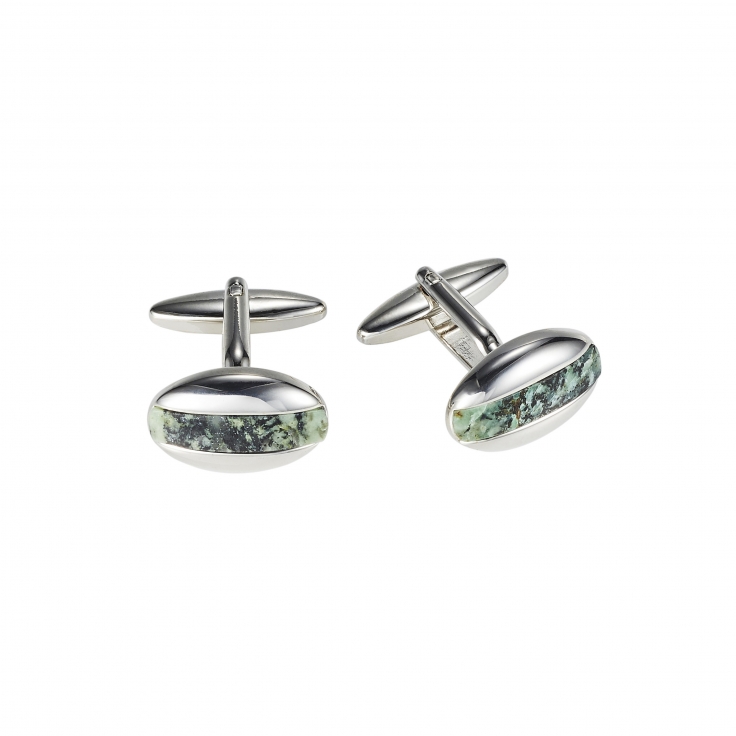 Add a refined touch to your formal ensemble with Cudworth’s polished Rhodium plated oval cufflinks. These elegant cufflinks feature a striking African Turquoise inlay, offering a unique and stylish accent to any shirt cuff. Their robust construction ensures durability while the easy-to-use fastening system makes them practical for everyday use. Express your personal style with these sophisticated accessories.