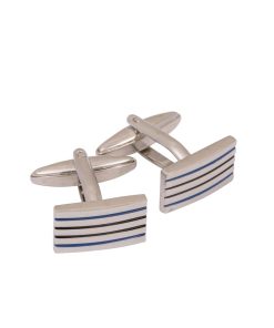 Introduce a touch of sophistication with Cudworth’s polished Rhodium plated rectangle cufflinks. Adorned with black and blue striped enamel inlays, these sleek accessories make the perfect addition to any gent’s attire. Ideal for business meetings, formal events or simply elevating your everyday style; they are as versatile as they are stylish.