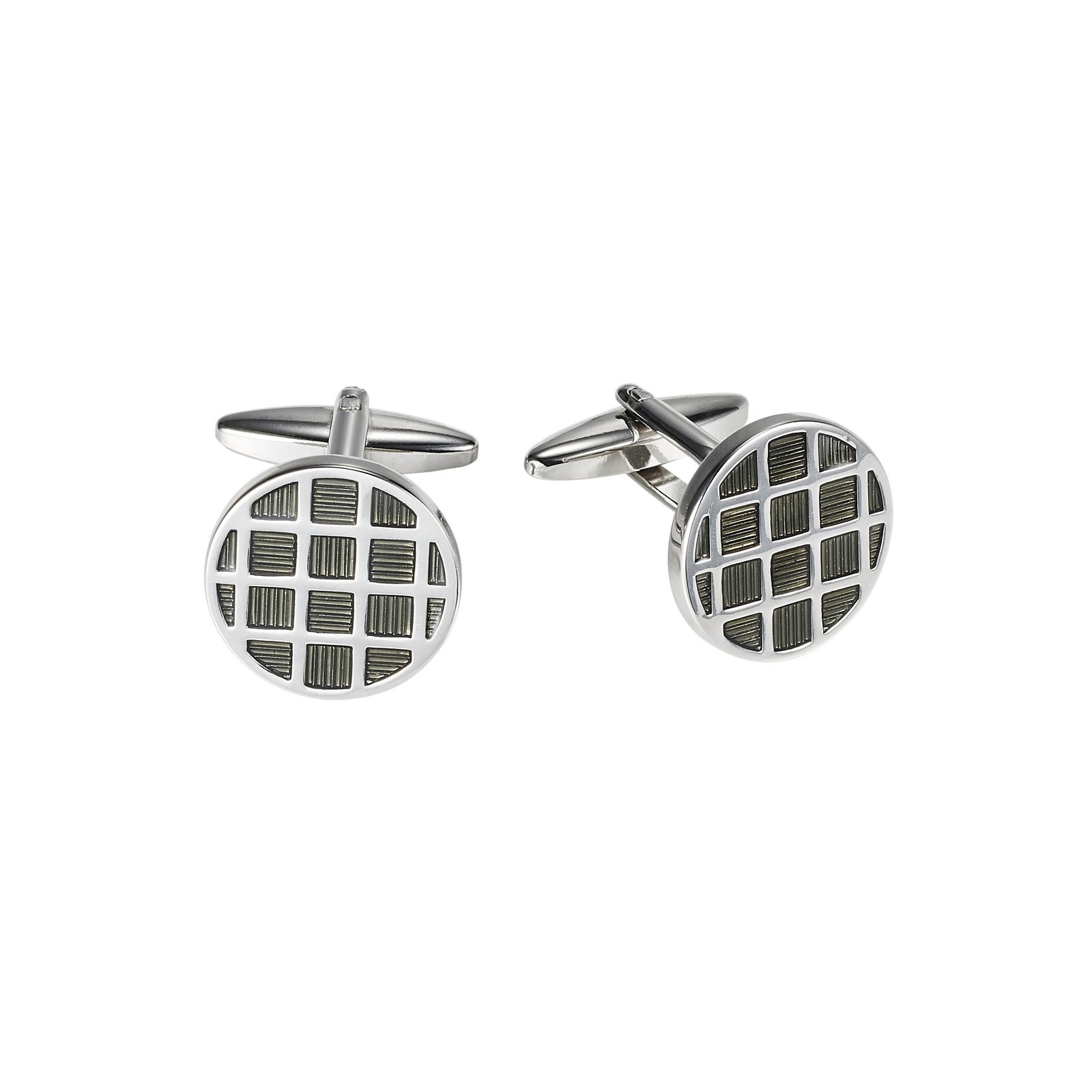 Introducing our Cudworth Rhodium Plated Round Cufflinks. These sleek, polished cufflinks feature a stylish chequered charcoal enamel inlay that adds a touch of modern sophistication to any attire. Perfect for the discerning gentleman who appreciates quality and understated elegance.