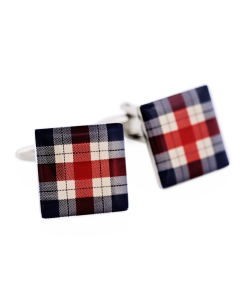 These polished square cufflinks by Cudworth make a stylish statement with their timeless tartan pattern in bold red, white and blue. The rhodium plated design adds a luxurious touch to any formal ensemble, while the enamel finish ensures durability. A well-crafted accessory that blends traditional charm with modern elegance.