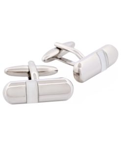 Add a touch of sophistication to your attire with Cudworth’s Polished Rhodium Plated & White Cat’s Eye Tube Cufflinks. These stylish cufflinks feature a sleek tube design, plated in polished rhodium for an elegant shine, and adorned with white cat’s eye stones for an extra splash of luxury. Perfect for both formal events and everyday wear.