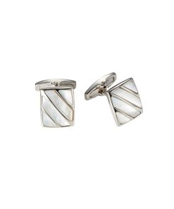 Elevate your sartorial elegance with Cudworth’s Polished Rhodium Stripe Mother Of Pearl Cufflinks. Perfectly crafted to add a distinct touch to any formal ensemble, these cufflinks feature an attractive rhodium stripe design, accentuated by the subtle allure of mother of pearl. A perfect gift for the sophisticated gentleman who appreciates classic luxury.