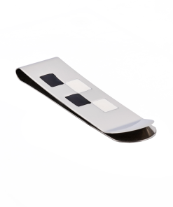 This sleek Cudworth money clip, crafted from polished stainless steel and adorned with black and white enamel, embodies modern masculinity. Its slim design makes it pocket-friendly while its robust construction ensures longevity. Perfect for the discerning gentleman who appreciates style and functionality in equal measure.