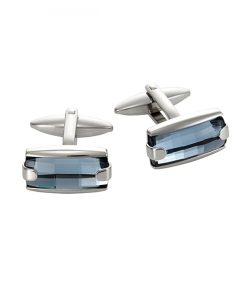 Add a touch of understated elegance to your ensemble with these Cudworth cufflinks. Expertly crafted from polished stainless steel, they feature distinctive aquamarine Swarovski crystals for an unexpected pop of colour. The perfect blend of style and sophistication, they make a splendid gift or personal indulgence.